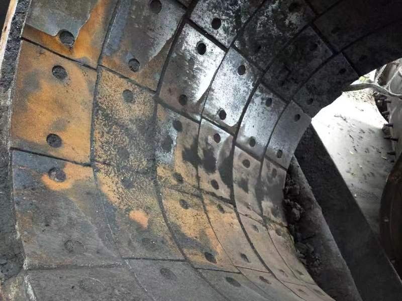 落煤管材質為Q235-A ,內部鑲嵌可更換的KNM60耐磨鋼板,通過沉頭螺栓安裝于落煤管上,襯板厚度不小于25mm,耐磨層厚度≥14mm,HRC硬度50-60。KNM60耐磨鋼板表面要求光滑平整,確保不發(fā)生掛料堵料現(xiàn)象。